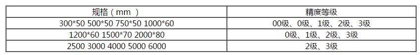 鑄鐵平尺的規格和精度等級:
